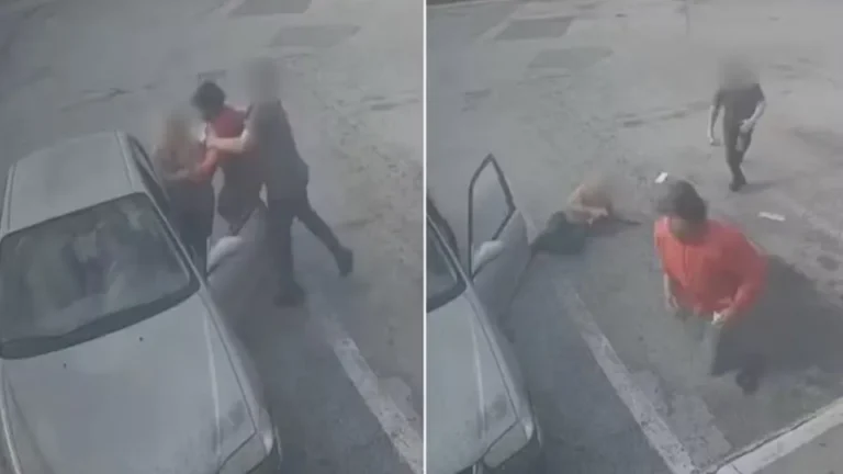 As imagens mostram a idosa deixando a loja com o dinheiro em mãos e caminhando até o carro no estacionamento. Um homem se aproximou dela e tomou o dinheiro de forma violenta. Um cliente que estava na loja tentou intervir, mas o suspeito agrediu a idosa, que caiu no chão, enquanto o outro homem tentava contê-lo.