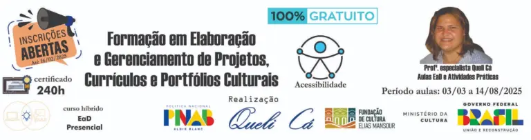 Totalmente gratuito, o curso é uma oportunidade única para quem busca se capacitar na criação e gestão de projetos culturais de forma profissional e inclusiva