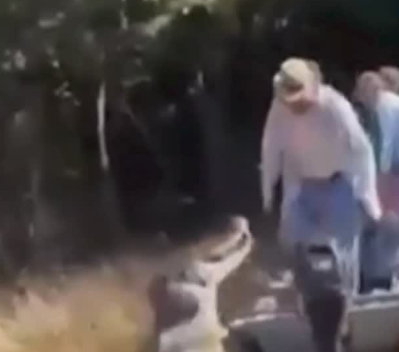 Jacaré-negro tenta morder turistas antes de passeio de barco na Bolívia. O animal, que pode alcançar até seis metros de comprimento, pulou da água para atacar, mas por sorte nada aconteceu.