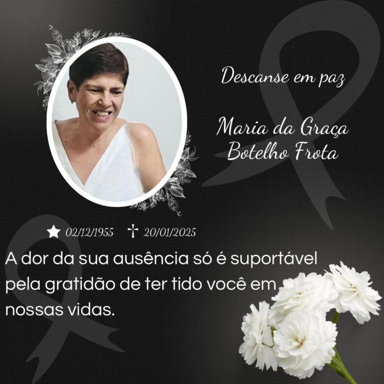 Maria da Graça Botelho Frota faleceu no começo da noite da última segunda-feira (20), às 18h10. Nascida em 2 de dezembro de 1955, Maria da Graça foi uma advogada renomada e respeitada por sua atuação. A mulher faleceu devido a uma infecção generalizada.