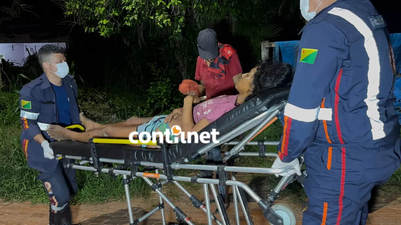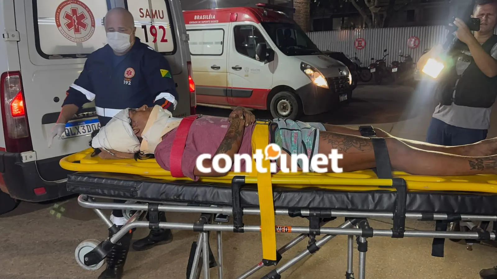 Cena do crime: Caline é imobilizada para ser transportada ao pronto-socorro após sofrer ferimentos graves/Foto: ContilNet