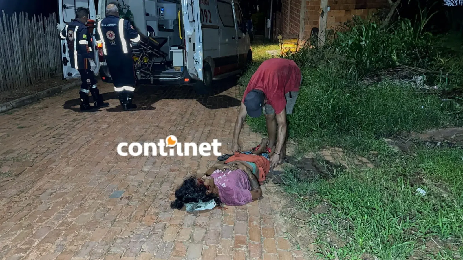 Equipe do Samu presta os primeiros socorros a Caline, que foi brutalmente agredida na via pública/Foto: ContilNet