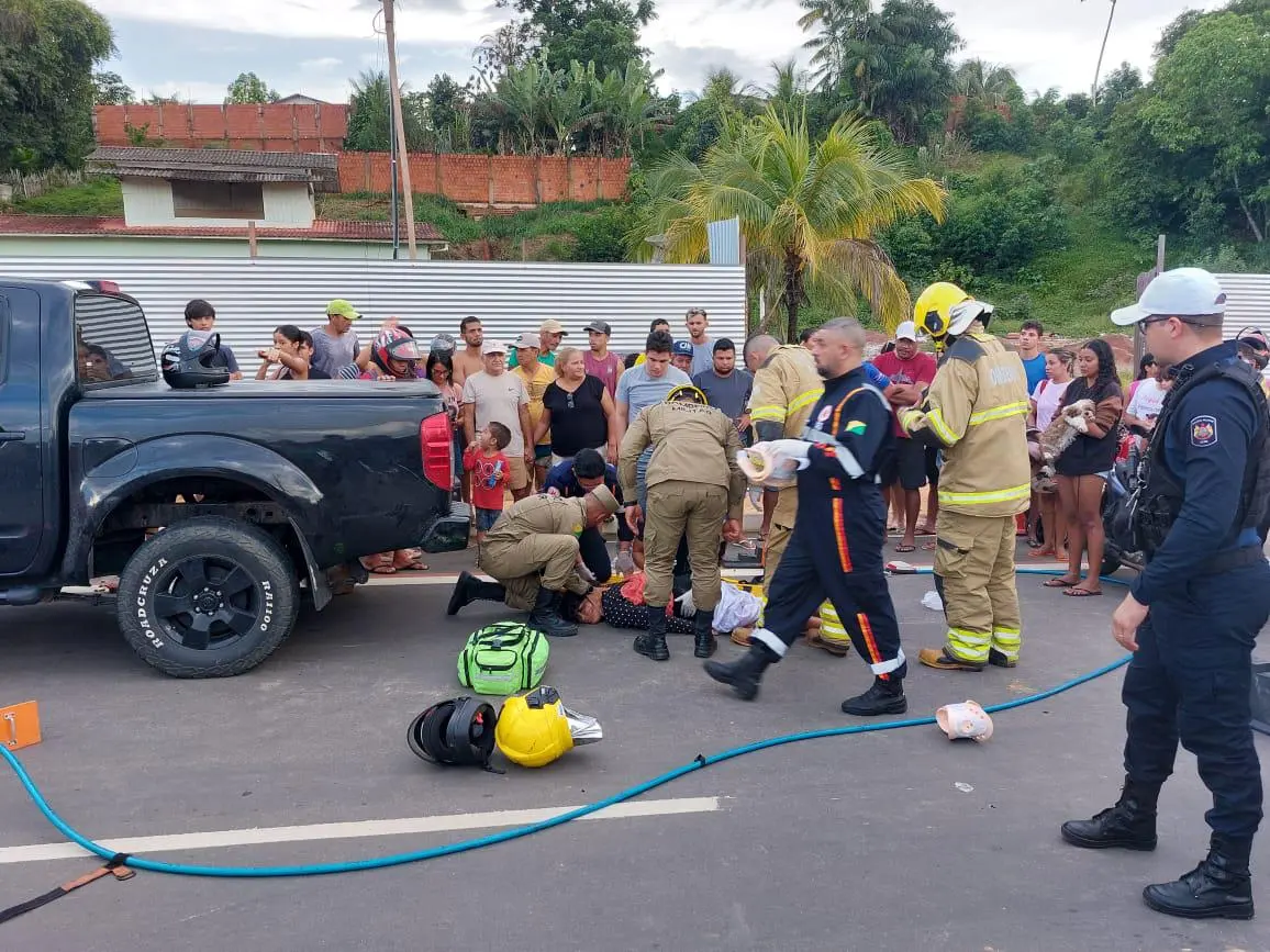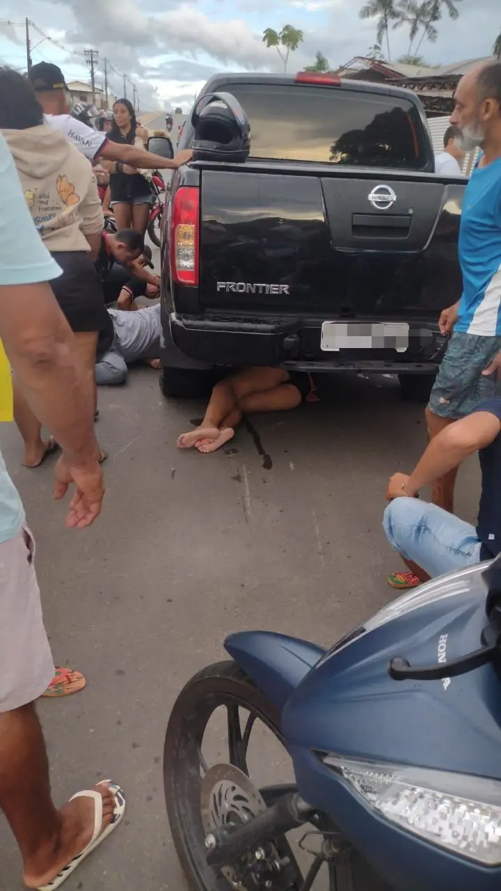 Mulher é atropelada em rodovia e fica embaixo de caminhonete após acidente no Acre