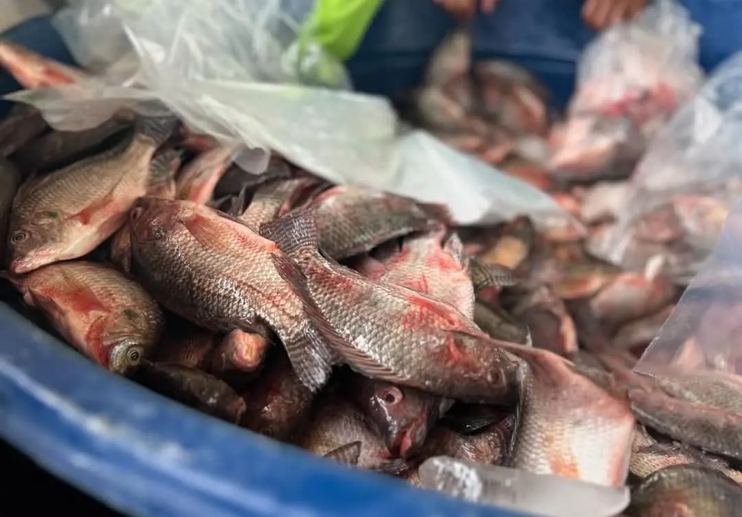 300 kg de peixe, doados pelo empresário Betinho da Peixaria Reis, garantem alimentação e alívio para as famílias da comunidade indígena Jaminawá, no bairro 28 de Maio/Foto: Ascom