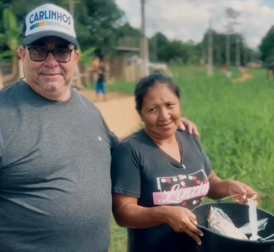 Prefeito Carlinhos do Pelado realiza entrega de peixes para a comunidade Jaminawá no bairro 28 de Maio, marcando um gesto de solidariedade e compromisso com o bem-estar local/Foto: Ascom