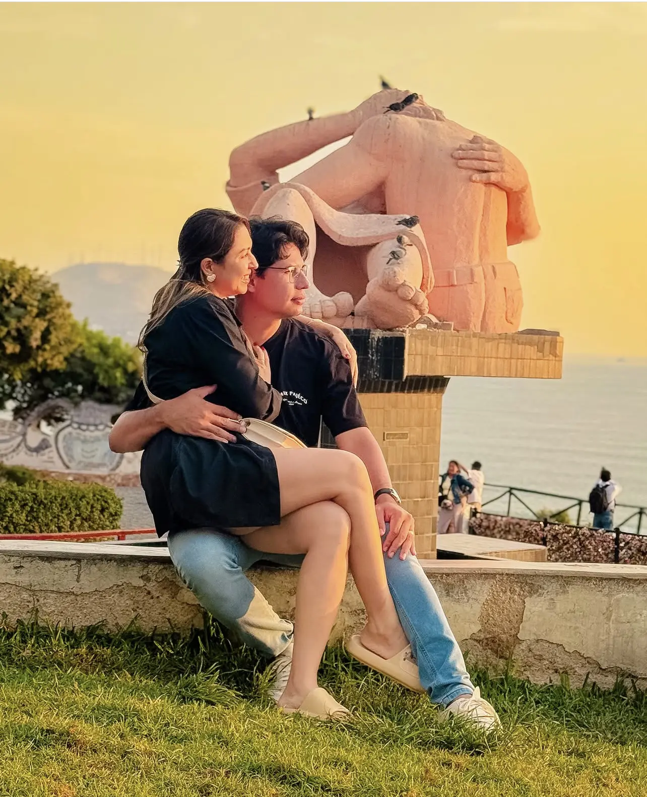 A coluna registra o momento do casal Douglas Barros e Sandra Mendes no Parque del Amor, em Lima no Peru.