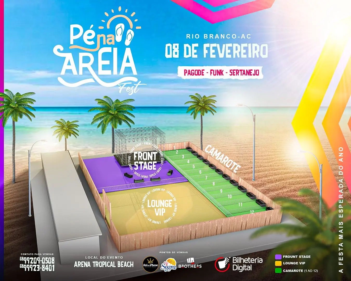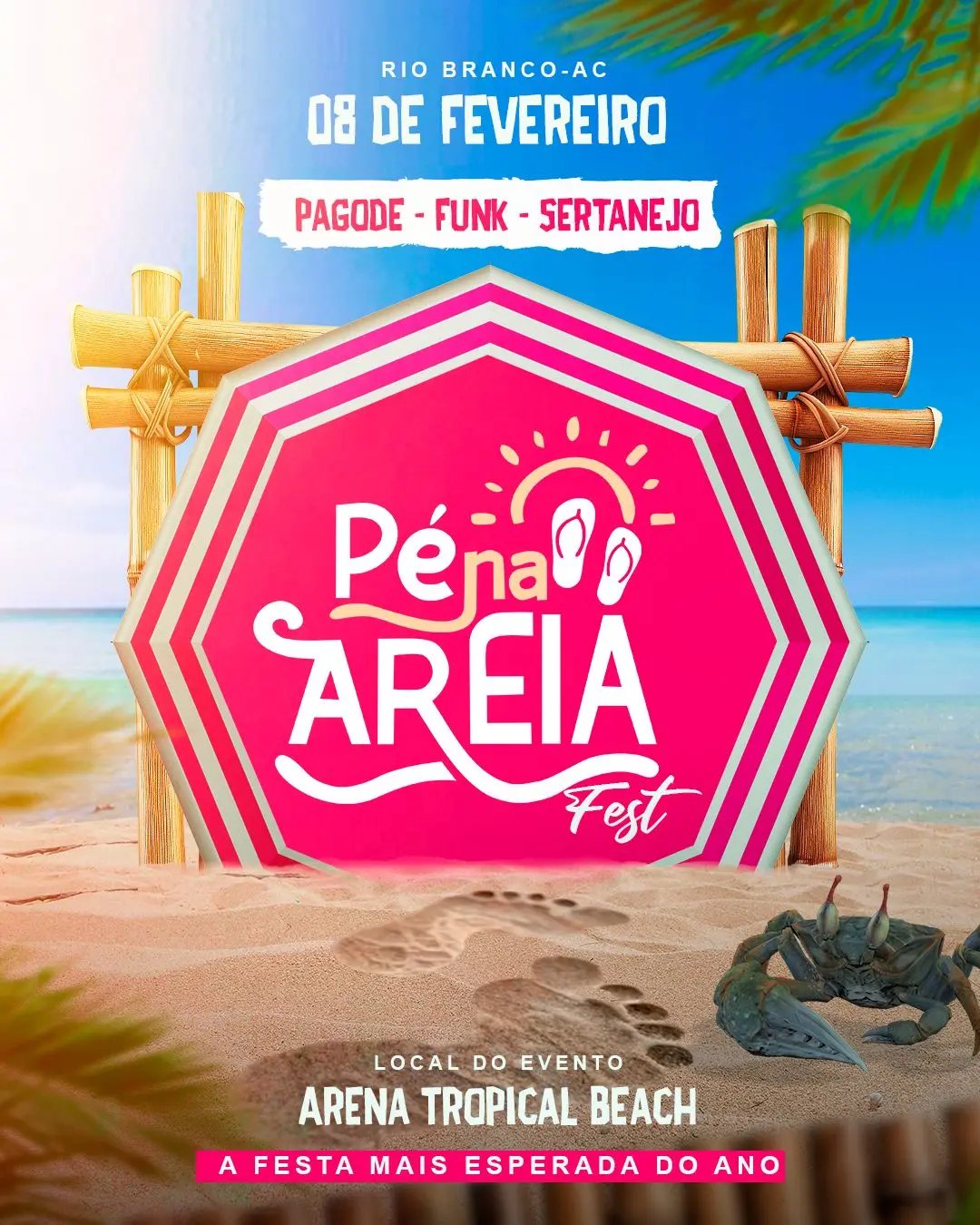 A festa mais esperada do ano está chegando! Pé na Areia, dia 8 de fevereiro na Arena Tropical Beach. Gente bonita, muita diversão, pagode, funk e sertanejo. Com atração Nacional, no funk com DH no Beat, e no sertanejo Murilo Henrique.