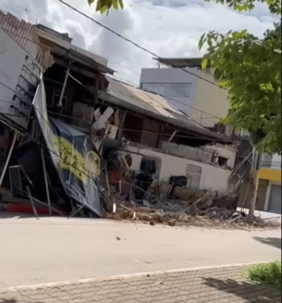 Parte de prédio desaba no centro comercial de Porto Velho neste domingo. Foto: Reprodução