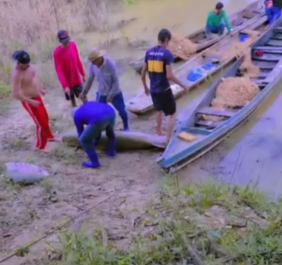 A captura do enorme peixe foi celebrada pelos pescadores, que compartilharam a façanha com a comunidade local.
