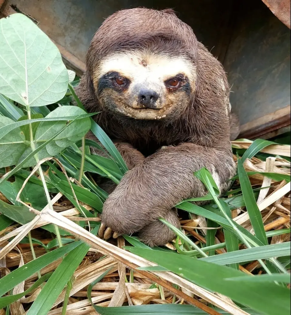 Preguiça é resgatada pelos Bombeiros em quintal de residência no interior do Acre. Foto: Reprodução/CBMAC