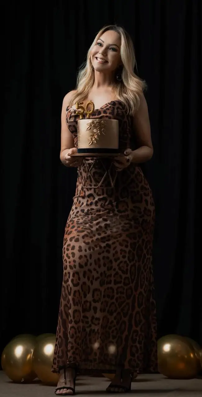 A gestora está comemorando seus 50 anos. “Cinquentou! E que felicidade! Eu amo fazer aniversário, porque cada nova idade é um presente, um novo ciclo, um novo propósito, uma nova chance, um novo sonho!”, escreveu Waleska ao compartilhar as imagens em que aparece usando um vestido com estampa animal print.