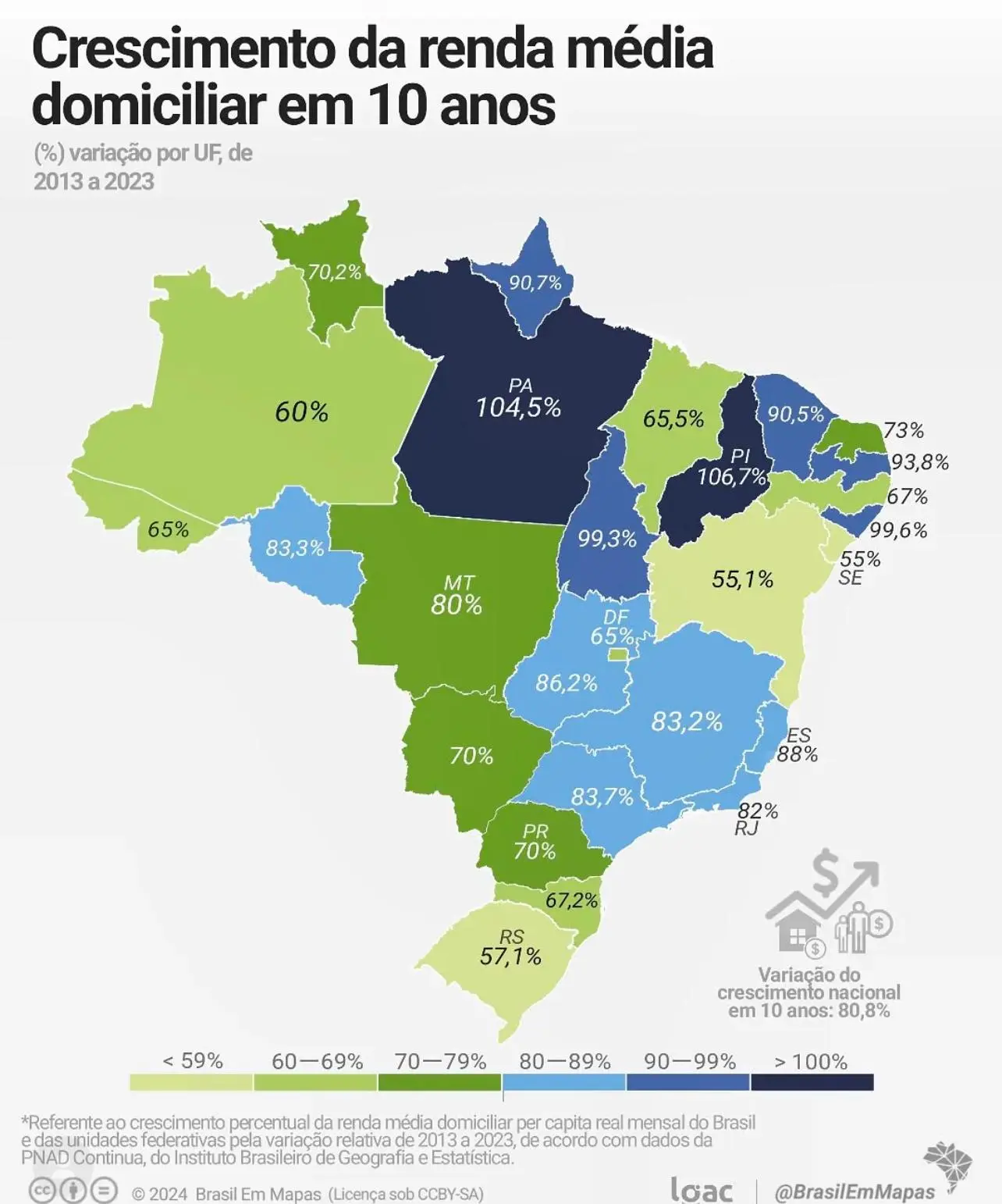 Por outro lado, estados como Sergipe (55%), Bahia (55%) e Rio Grande do Sul (57%) tiveram os menores crescimentos do país, embora ainda positivos. Na média nacional ficaram São Paulo, Minas Gerais e Rio de Janeiro.