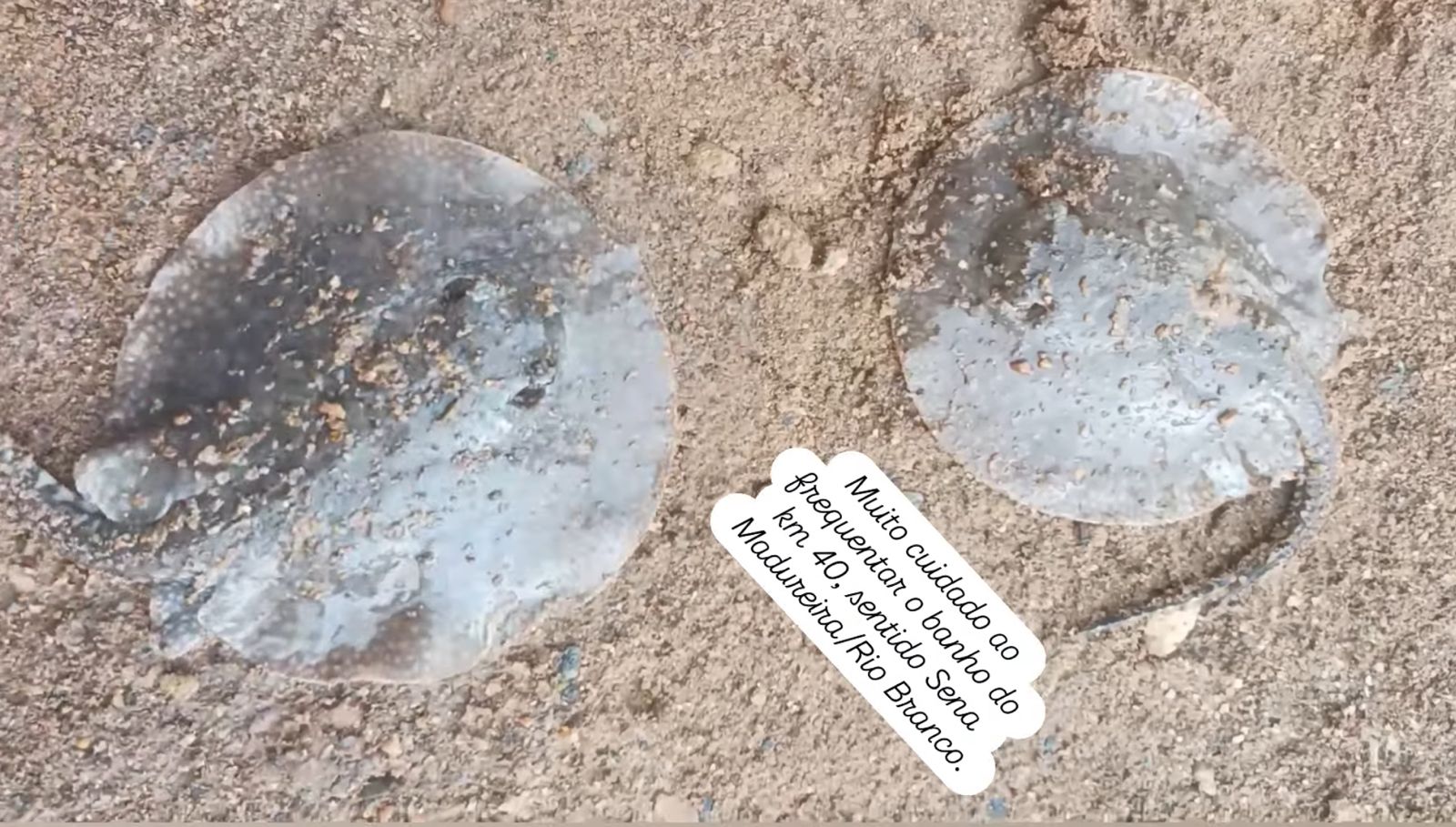 O radialista Josué Silva, de Sena Madureira, interior do Acre, gravou um vídeo alertando a população sobre o risco representado pela presença de arraias no famoso ‘Banho do 40’, um local muito frequentado pelos moradores da cidade. Banhistas também já viram duas grandes sucuris tomando sol no local, que é um dos preferidos de muitos moradores de Sena, onde eles se refrescam na água gelada tomando uma cerveja.