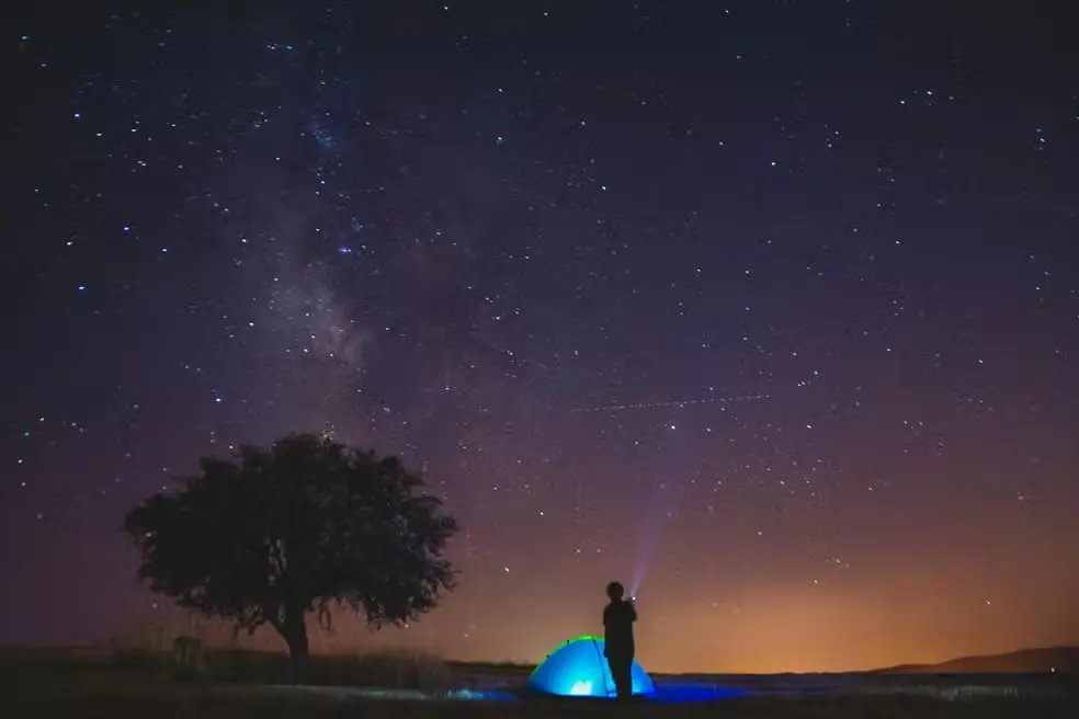 Pessoa observa estrelas e a Via Láctea no céu durante acampamento noturno — Foto: Emre Ayata via Pexels