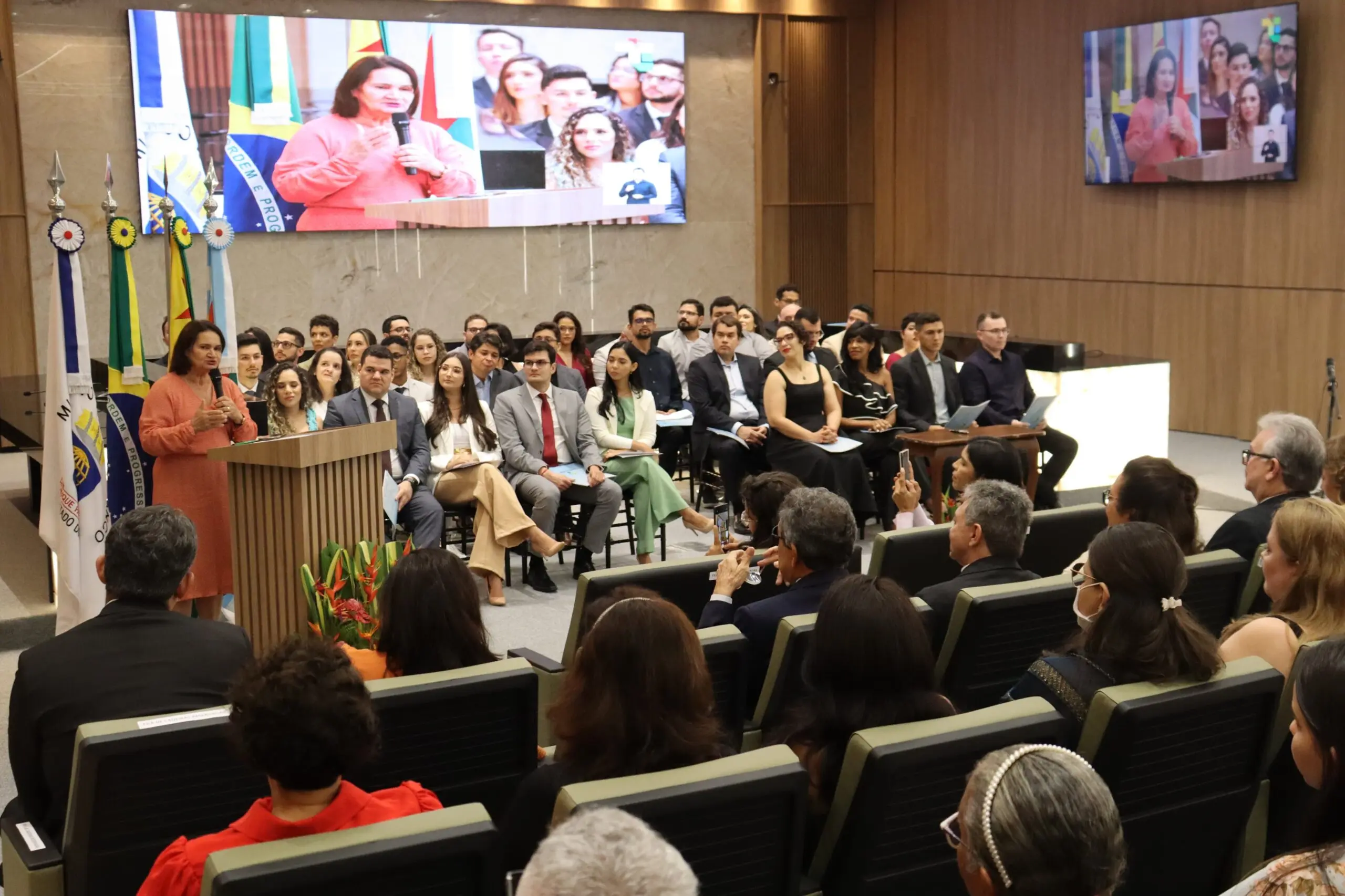 Durante a solenidade, a conselheira Dulcinéa Benício reforçou a importância da nova equipe para o Tribunal e incentivou os empossados a contribuírem com suas experiências.