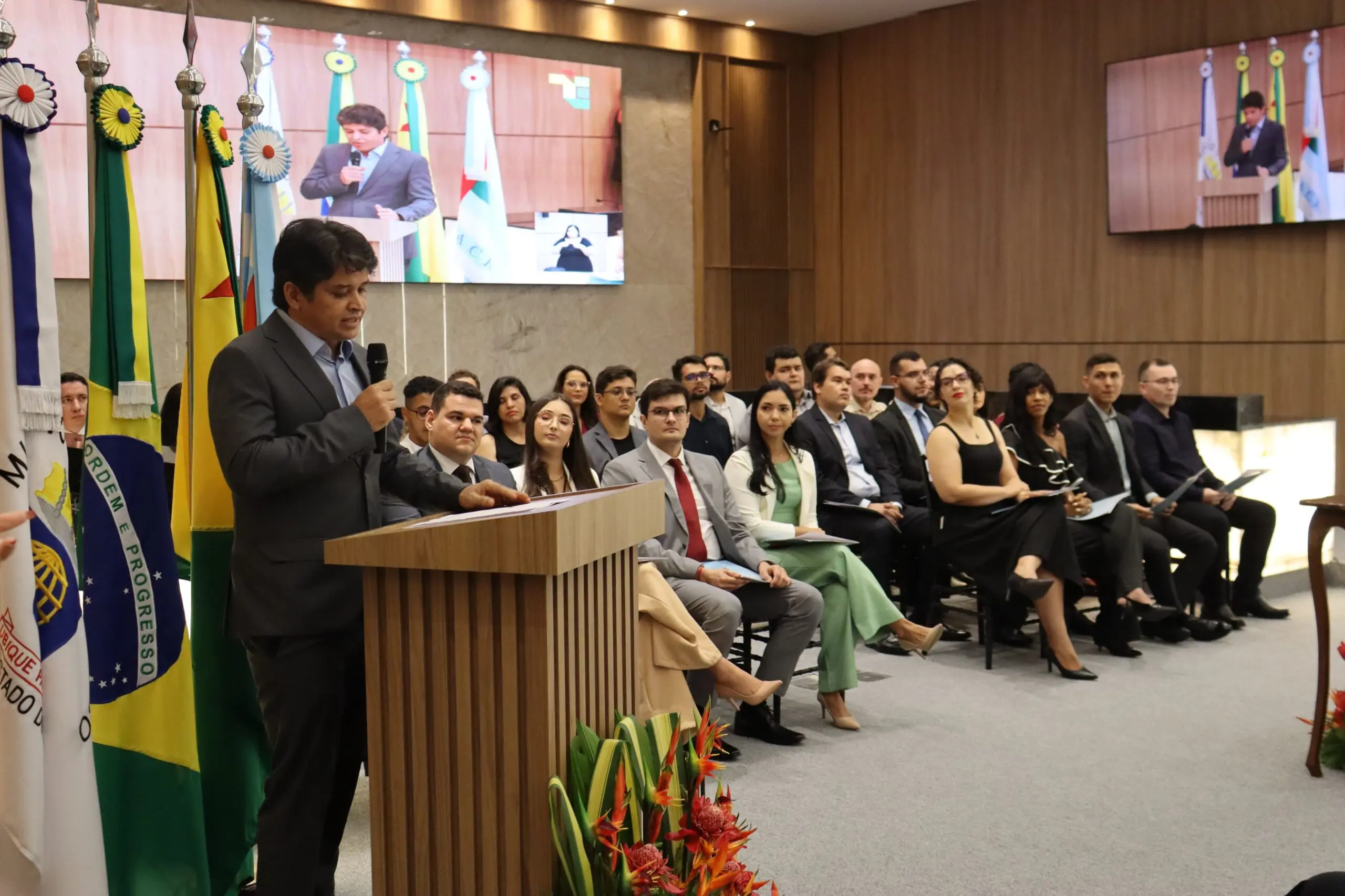 Representando os servidores empossados, Alex Brilhante compartilhou parte de sua trajetória de 17 anos como Técnico de Controle Externo do TCE, antes de assumir agora o cargo de Analista de Tecnologia da Informação. Em seu discurso, ele destacou o amor pelo Tribunal e desejou que os novos colegas compartilhem do mesmo sentimento.