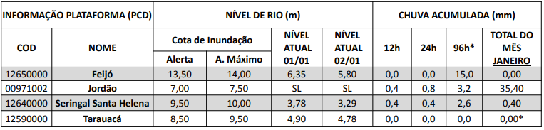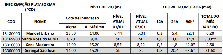 Um levantamento feito pela Secretaria de Estado de Meio Ambiente (Sema) mostra que todos os rios do Acre tiveram queda em seus níveis do dia 1º para o dia 2 de janeiro de 2024.