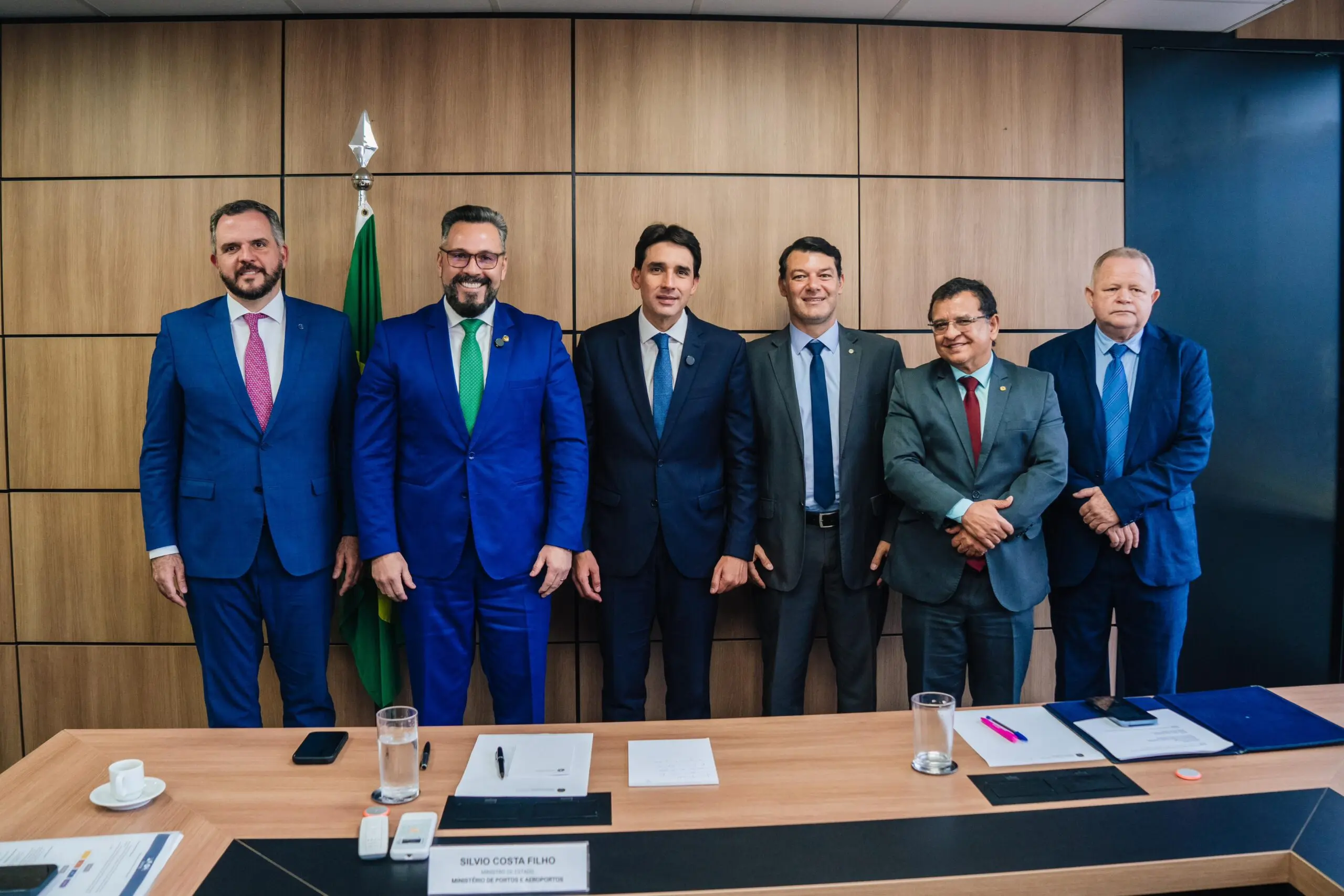 O senador Alan Rick (União Brasil-AC) liderou reunião, na Esplanada dos Ministérios, em Brasília, nesta terça-feira (11). A reunião foi na presença do ministro de Portos e Aeroportos, Silvio Costa Filho e o secretário de Aviação Civil Tomé Franca, ao lado do deputado estadual Luiz Gonzaga, do deputado federal Roberto Duarte e do vice-prefeito de Feijó, Juarez Leitão. Eles discutiram a consolidação do primeiro voo internacional regular operado por uma empresa peruana direto para o Acre.