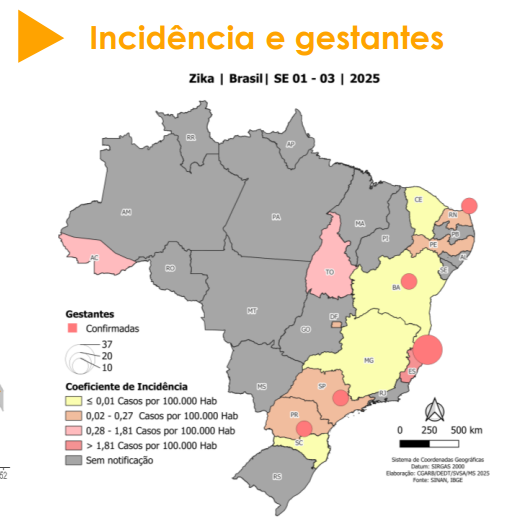 Mapa de incidência da Zika/ Imagem: Ministério da Saúde