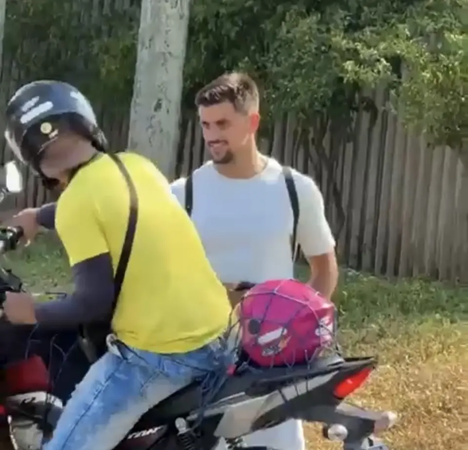 Ator de novela da Globo surpreende ao ser flagrado saindo da emissora em moto de aplicativo. Foto: Reprodução
