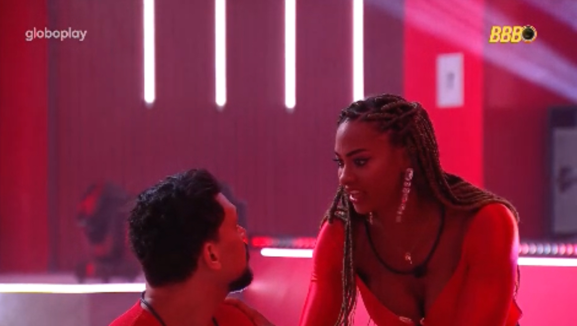 No fim, Aline bate palmas em sinal de decepção, e Vinícius ironiza, aplaudindo de volta.