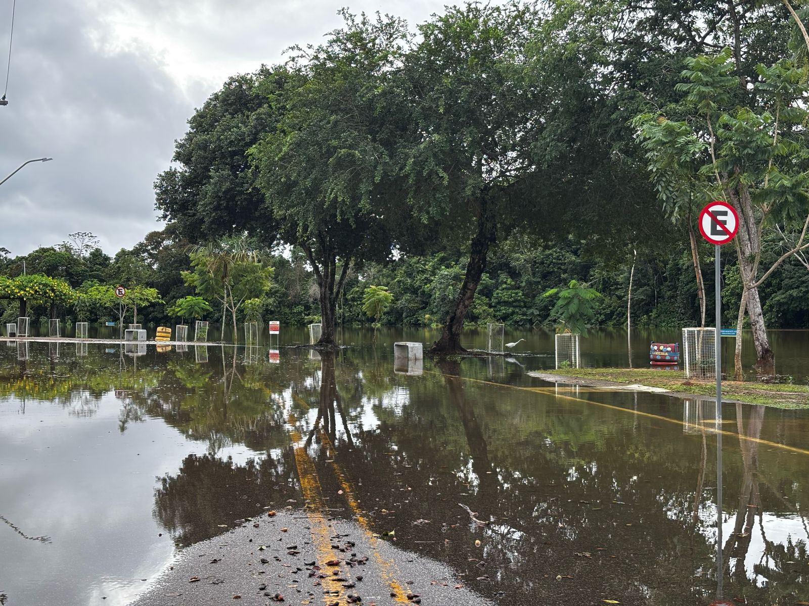 O intenso volume de chuvas que atingiu Rio Branco no sábado (22) provocou o transbordamento do lago da Universidade Federal do Acre (Ufac), alagando rua interna do campus e dificultando o acesso à instituição. As águas subiram rapidamente, atingindo partes da via principal que conecta diversos blocos e setores do campus.