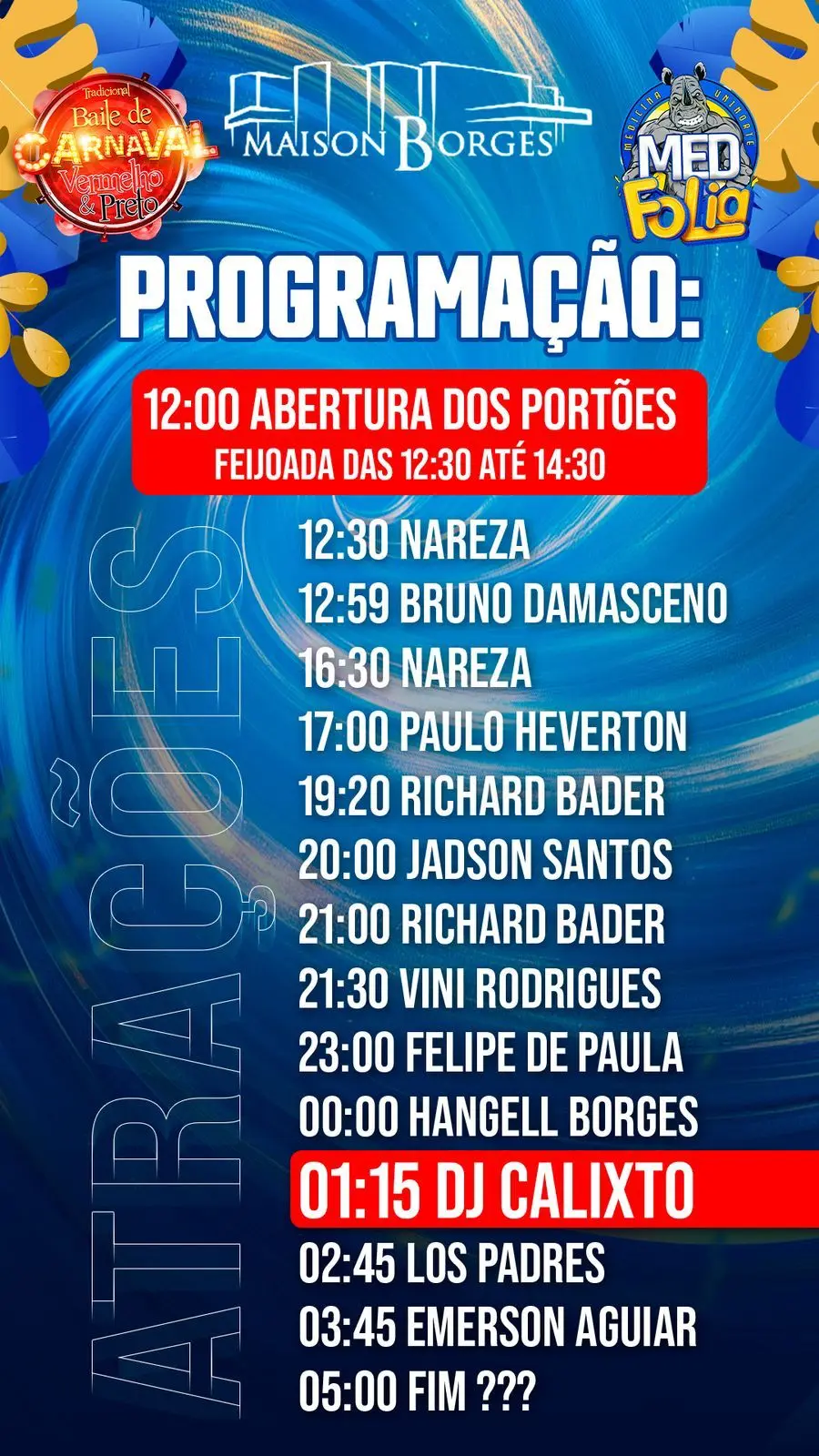 Com 10 horas de festa, MED FOLIA 2025 ocorre neste sábado na Maison Borges. Foto: Reprodução