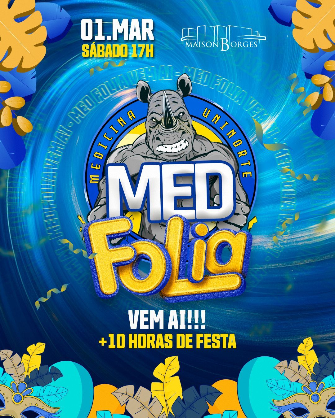 O evento “mais insano do ano”, a MED FOLIA 2025, vai acontecer neste sábado (1), na Maison Borges, casa de shows localizada em Rio Branco. Organizado pela Associação Atlética Acadêmica de Medicina da Uninorte, a realização conta com diversas atrações em mais de 10 horas de festa.