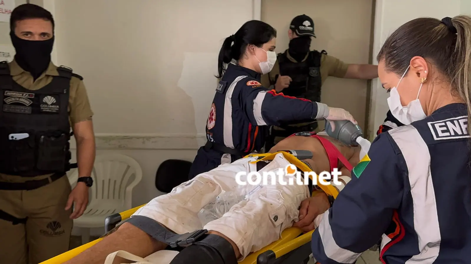 As testemunhas que presenciaram o espancamento acionaram o Serviço de Atendimento Móvel de Urgência (Samu), que enviou uma ambulância de suporte básico para prestar os primeiros socorros. Devido à gravidade das lesões, que incluíam afundamento de crânio e um traumatismo cranioencefálico (TCE) grave, foi necessário solicitar o apoio de uma ambulância de suporte avançado. A equipe de socorristas continuou o atendimento no local, pois o homem permanecia inconsciente.