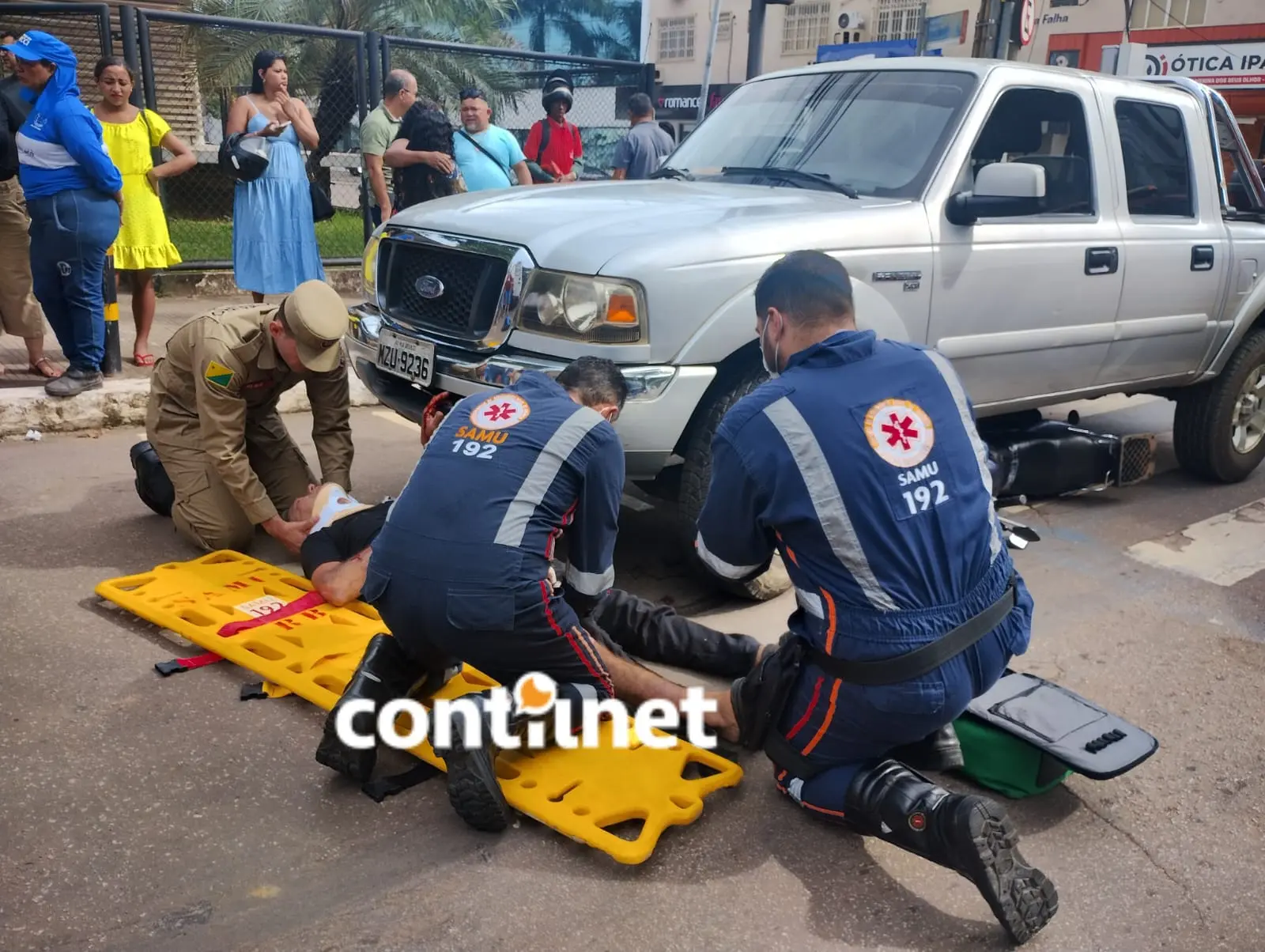 O motociclista Francisco Rafael de Melo, de 64 anos, foi vítima de um grave atropelamento na manhã desta sexta-feira (7), no cruzamento da Rua Marechal Deodoro com a Avenida Brasil, no Centro de Rio Branco.