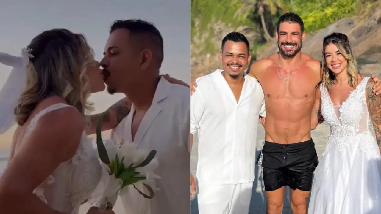 Fotos e vídeos mostram o vestido de noiva , o buquê com flores tropicais e a emoção de Taynã, que não segurou as lágrimas ao dizer “sim” – um momento que tá derretendo o coração da galera por aqui.