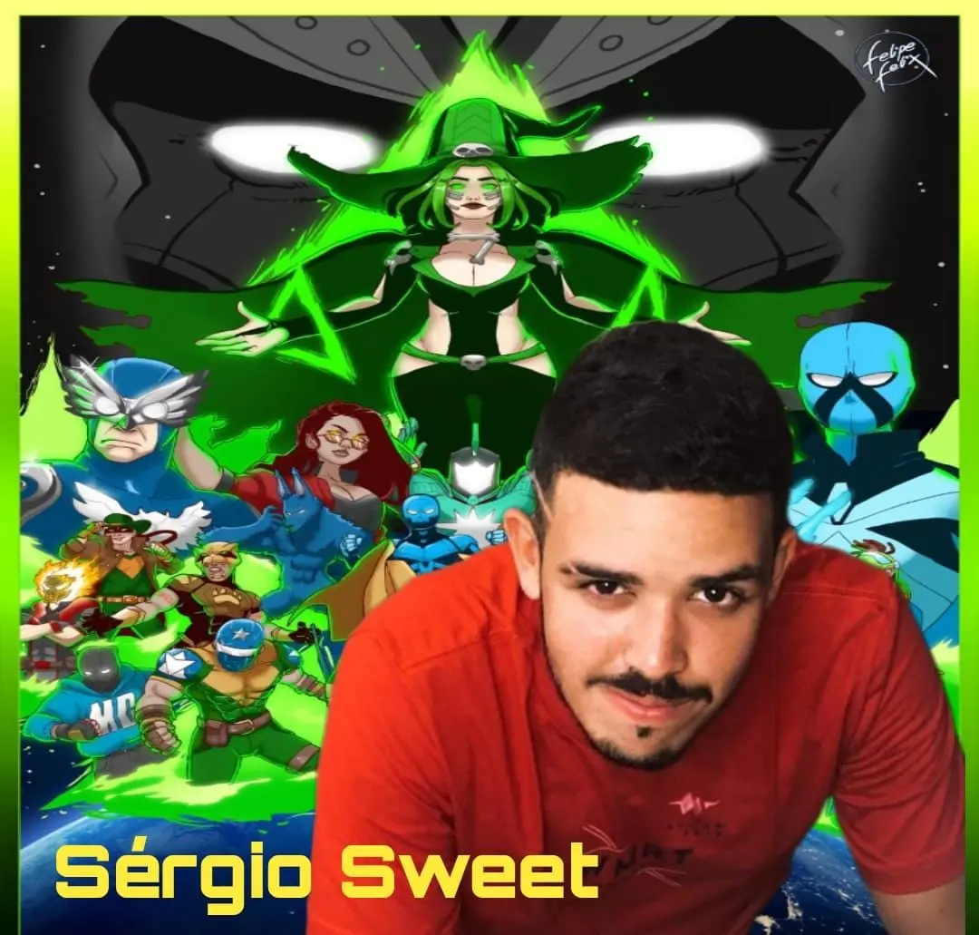 Criador de personagens marcantes como Fócus Pátria e Lady Seven, Sérgio não apenas constrói seus próprios universos, mas também abre portas para novos talentos. Com o Sweet Room, ele impulsiona e apoia quadrinistas iniciantes, ajudando-os a dar os primeiros passos no mundo da produção independente.