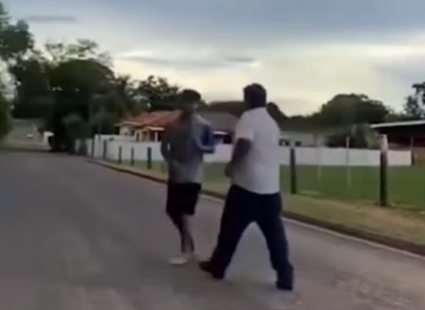 O caso, registrado em vídeo, mostra o momento em que o rapaz confronta o agressor e tenta impedir a continuação da agressão, enquanto testemunhas acompanham a cena.