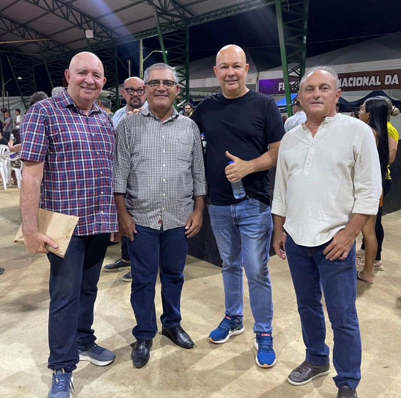 O Secretário Adjunto de Estado de Agricultura-Acre Edivan Maciel Azevedo com os empresários Agacis Lima, José Adriano e José Luís Felício no Festival Internacional da Castanha realizado em Epitaciolândia no último fim de semana.