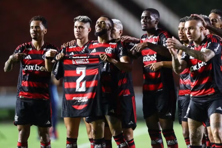 O atacante e os colegas ainda levantaram uma camisa com o nome de Varela na comemoração. Na terça-feira, o lateral-direito perdeu a mãe, Carmen Beatriz Olivera, e foi liberado pelo Flamengo para viajar ao Uruguai.