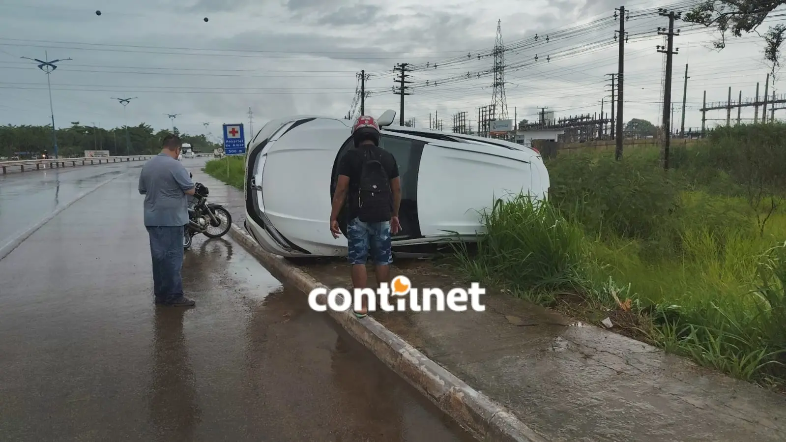 Um veículo capotou após aquaplanar na pista e deixou o motorista com escoriações na tarde desta terça-feira (11), na Via Verde, nas proximidades da Unidade de Pronto Atendimento (UPA) da BR-364, no Segundo Distrito de Rio Branco.