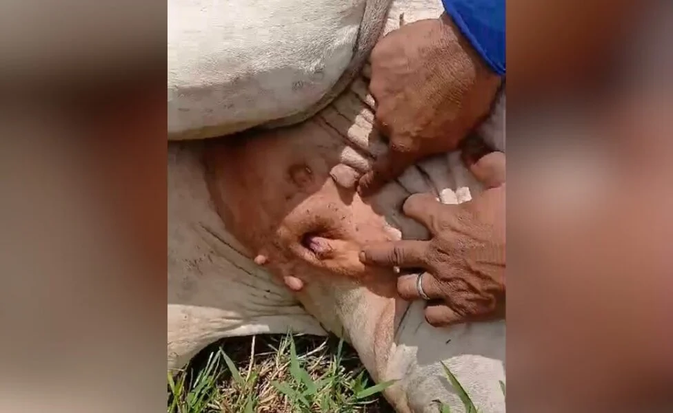 Após analisar o gado mais detalhadamente, o pecuarista descobriu que a novilha era diferente, apresentando tanto testículos quanto vagina, localizada exatamente na região onde deveriam estar as tetas.