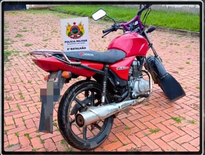 Na noite de sábado (22), a Polícia Militar do Acre recuperou uma motocicleta Honda CG 150 Titan vermelha, roubada no bairro Bosque. A ação aconteceu no bairro Habitasa, após uma perseguição a um suspeito.
