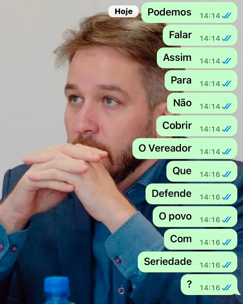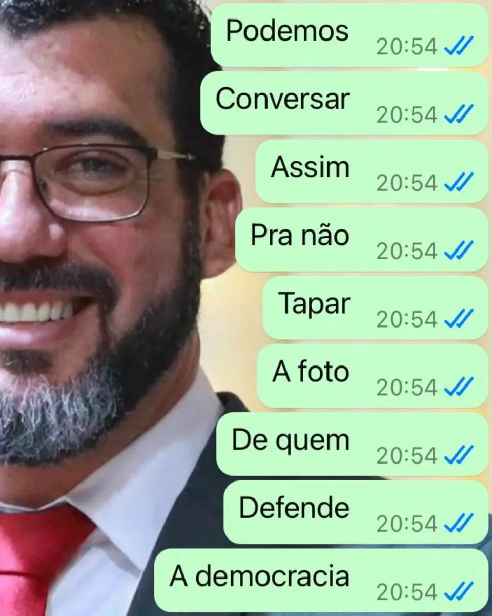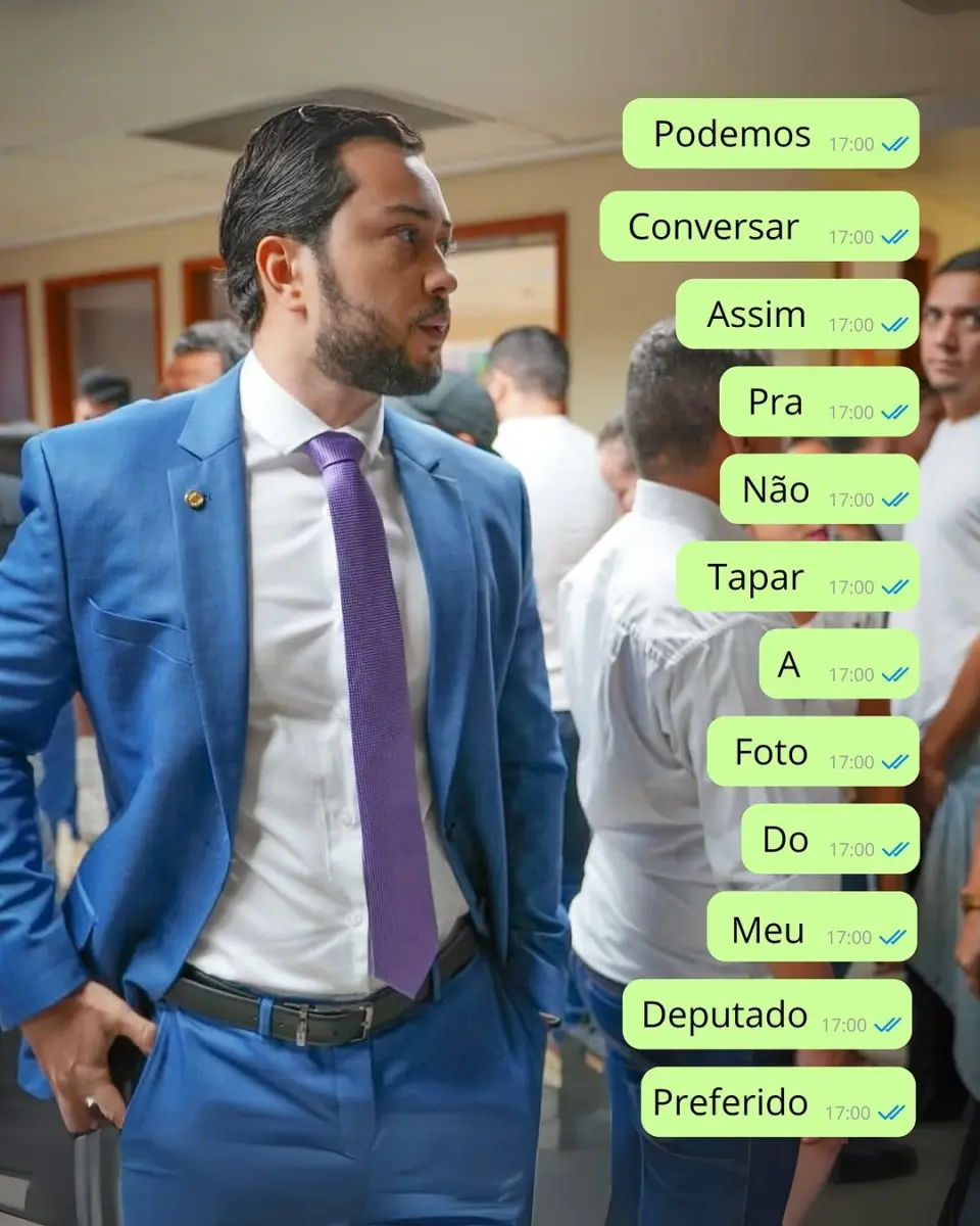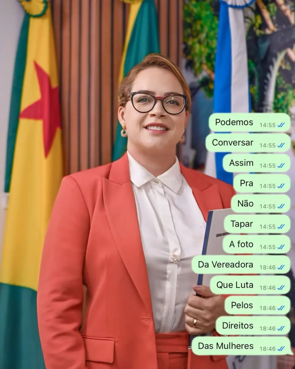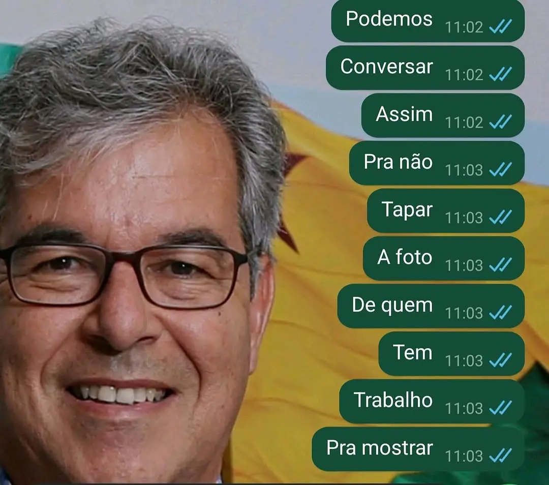 Uma nova trend tem viralizado no Instagram recentemente, com um print de Whats App pedindo para que a conversa seja feita em mensagens curtas para não sobrepor uma foto de alguém ao fundo, com elogios à pessoa durante o pedido.