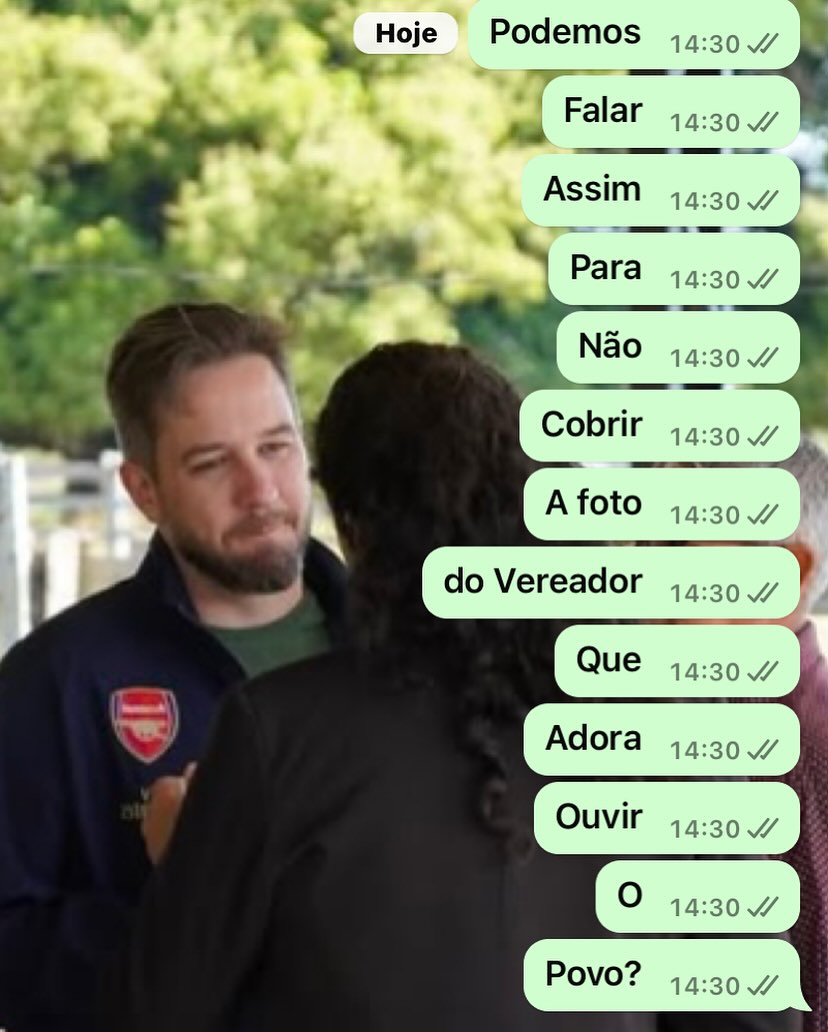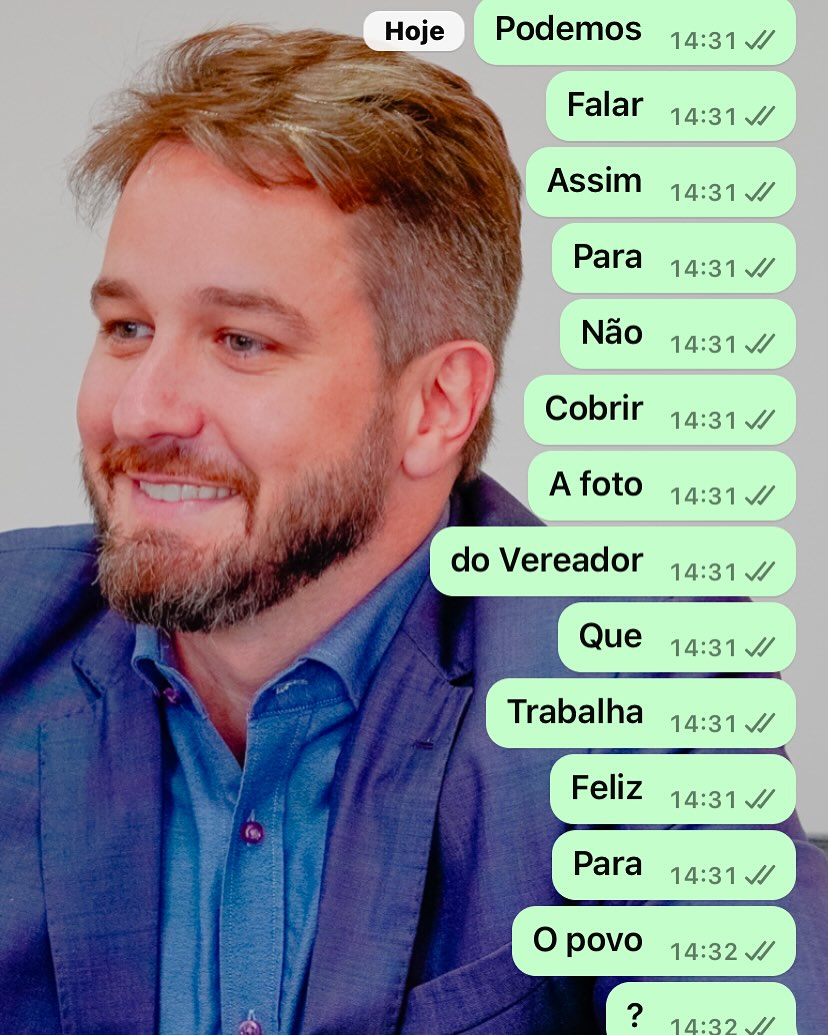 Uma nova trend tem viralizado no Instagram recentemente, com um print de Whats App pedindo para que a conversa seja feita em mensagens curtas para não sobrepor uma foto de alguém ao fundo, com elogios à pessoa durante o pedido.