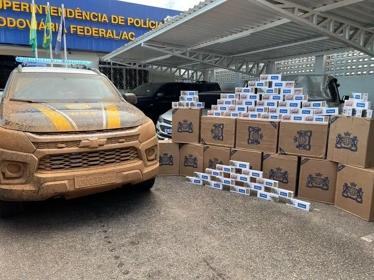 Uma equipe da Polícia Rodoviária Federal (PRF), em ronda na BR-317, na tarde da última segunda-feira (3), em Senador Guiomard/AC, apreendeu 7,5 mil maços de cigarros de origem estrangeira em uma caminhonete que trafegava na contramão e em alta velocidade na via.