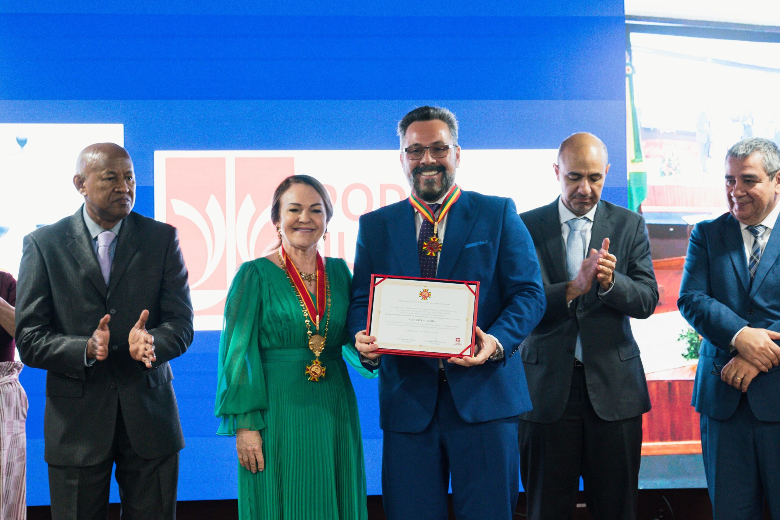 Nesta quinta-feira, 6, durante a reinauguração da Escola do Poder Judiciário do Acre (ESJUD), o senador Alan Rick recebeu a medalha da Ordem do Mérito do Judiciário pela contribuição com diversos projetos desenvolvidos pelo Tribunal de Justiça acreano (TJ/AC), através de emendas destinadas pelo parlamentar.