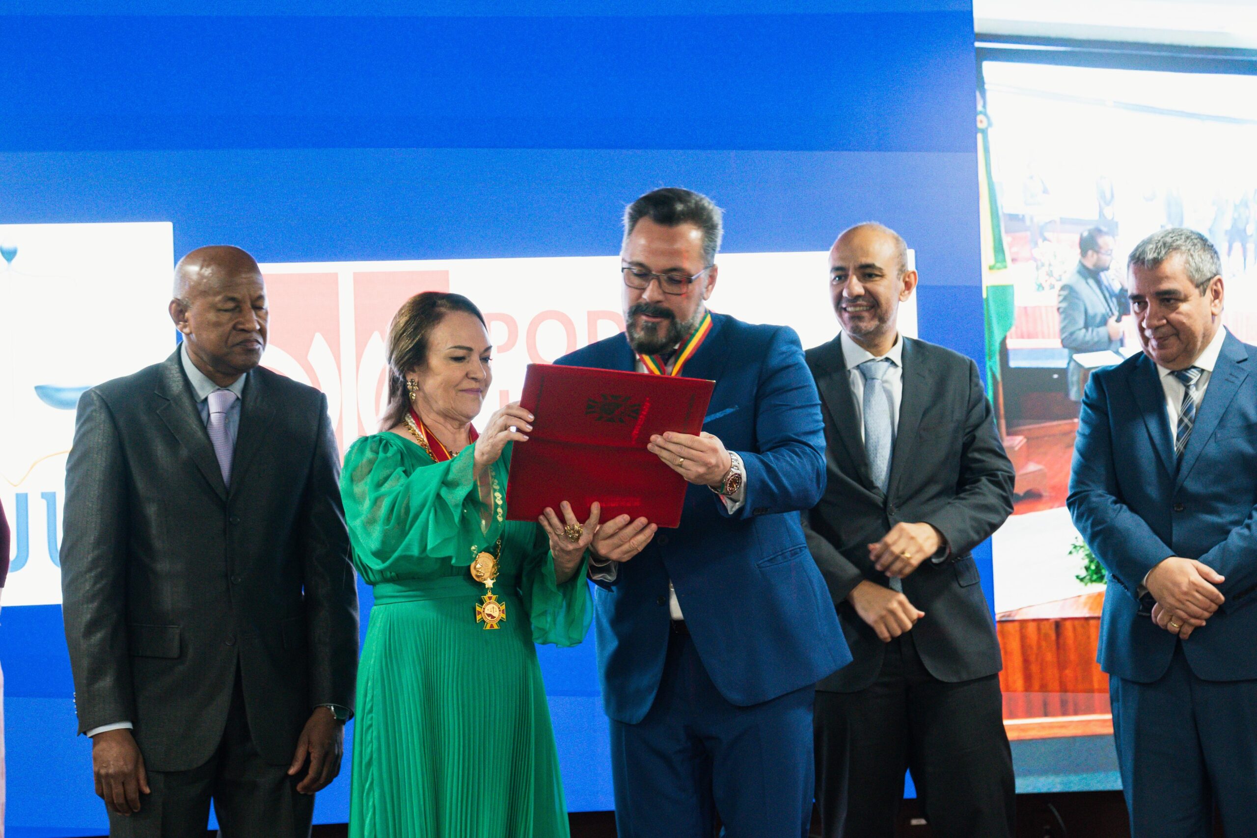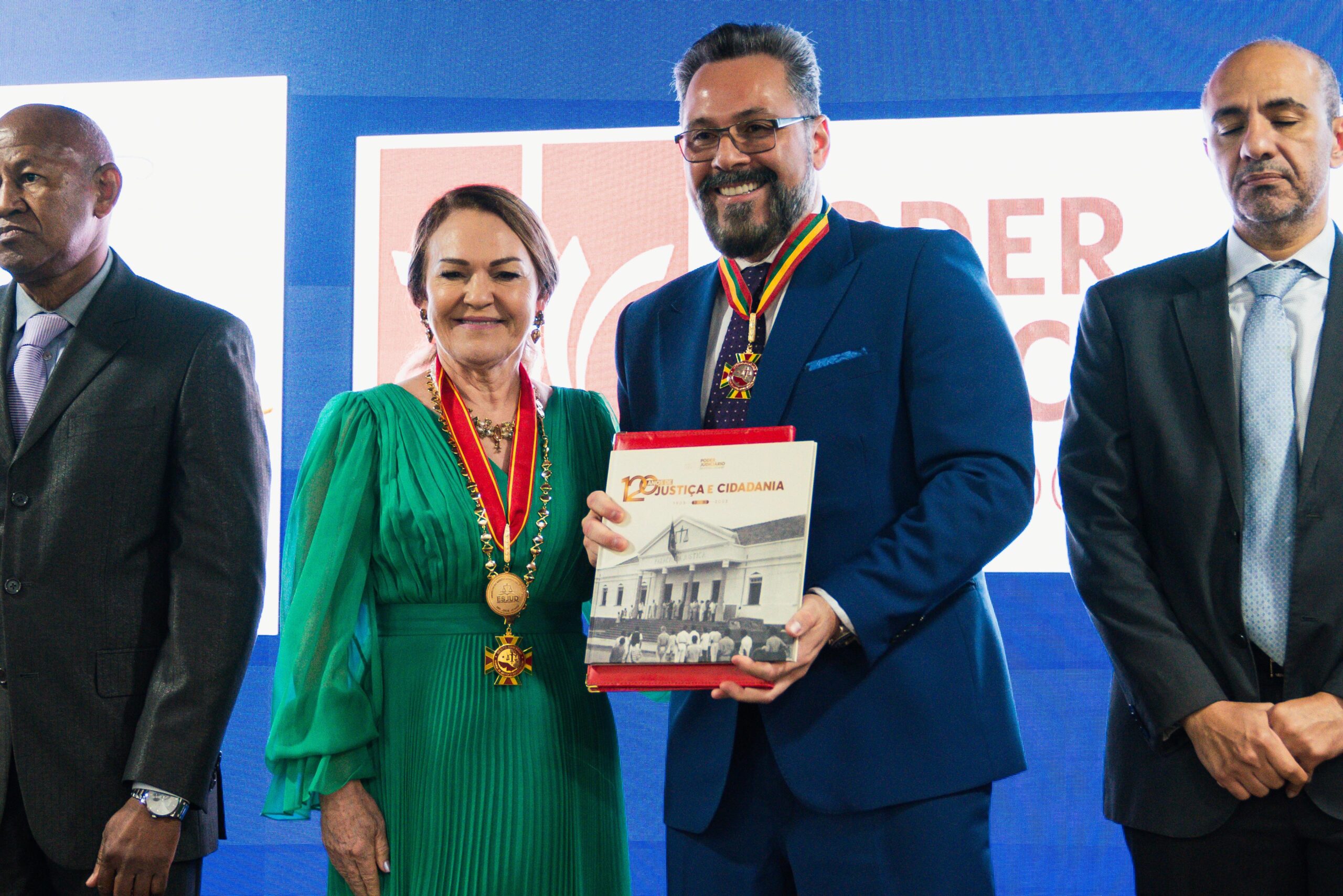 “Nossa gratidão, do fundo do coração pelo apoio do senador aos nossos projetos, sobretudo os sociais. Hoje lhe entregamos aqui essa honraria mais que merecida”, agradeceu a presidente do Tribunal de Justiça do Acre, desembargadora Regina Ferrari.