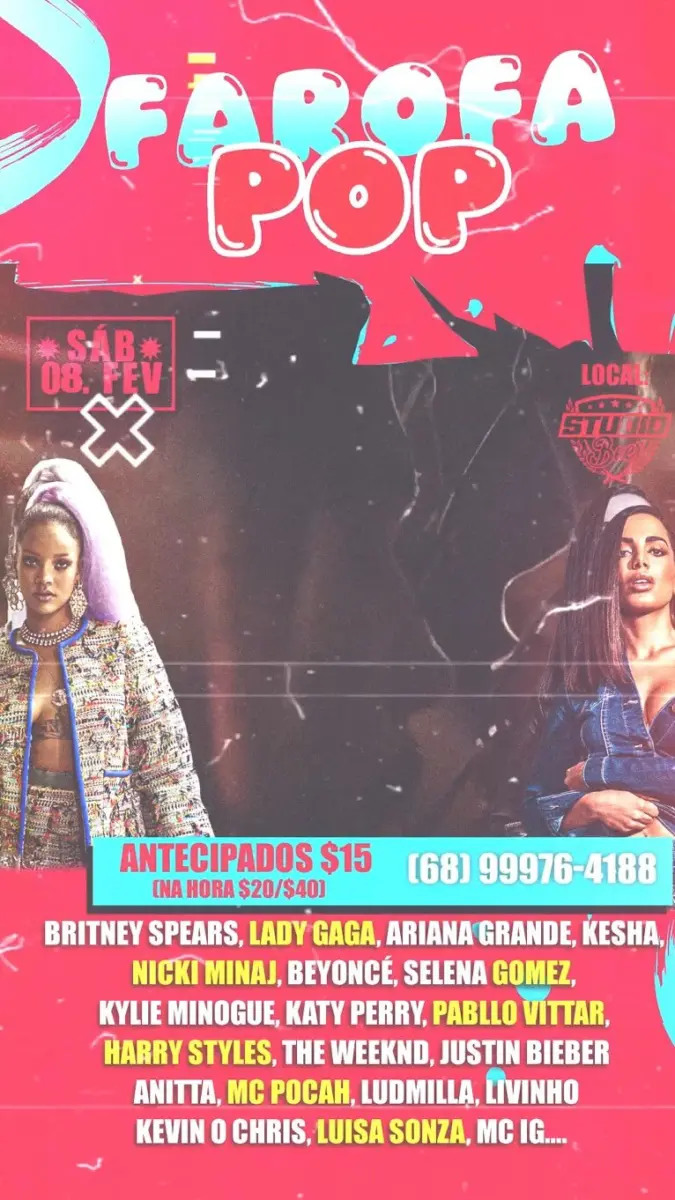 Pouca balada essa semana? Não mesmo! Os farofeiros do pop de plantão podem se sentirem agraciados, já que essa semana o Studio trás uma noite especial para eles! Preparem seus looks porque vai ser noite pra servir muito!