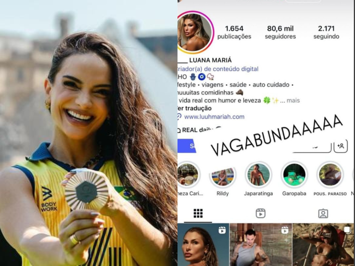 Em um print compartilhado nos stories, que foi apagado horas depois, a atleta expôs o perfil do Instagram da criadora de conteúdo digital Luana Mariá e a chamou de “vagabund**”.