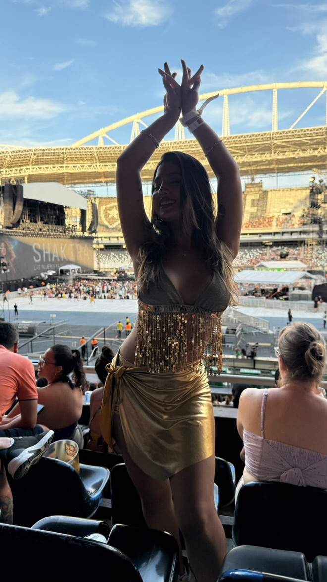 A professora de dança do ventre, Júlia Arantes, marcou presença no aguardado show da cantora Shakira no Brasil. Admiradora da artista e de sua expressiva performance, Júlia aproveitou cada momento da apresentação, vibrando com o sucesso da colombiana. Para ela, a conexão entre dança do ventre e o estilo inconfundível de Shakira tornou a experiência ainda mais especial.