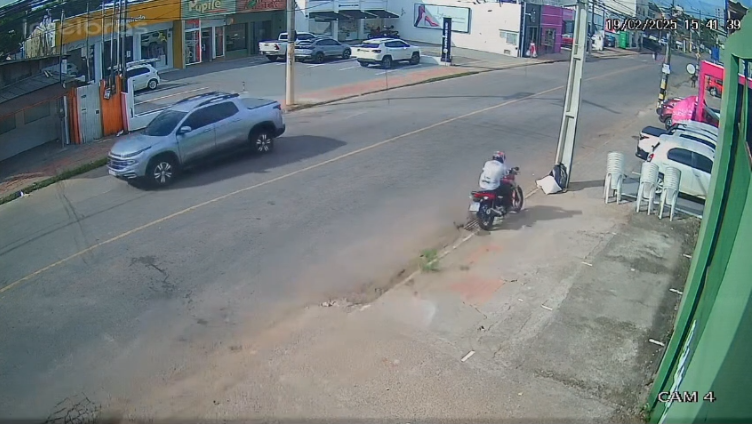 Vídeo mostra motociclista sem CNH colidir com poste ao desviar de veículo que fez conversão proibida/Foto: Reprodução