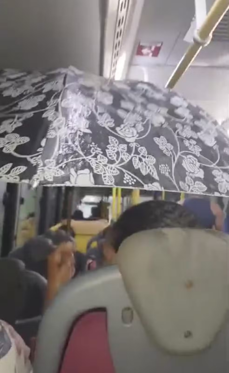 Uma usuária de um dos ônibus que circulam na capital registrou um momento inusitado vivido na linha Custódio Freire, quando os passageiros do coletivo precisaram abrir um guarda-chuva dentro do automóvel, devido a uma goteira. O vídeo foi divulgado pelo portal G1.