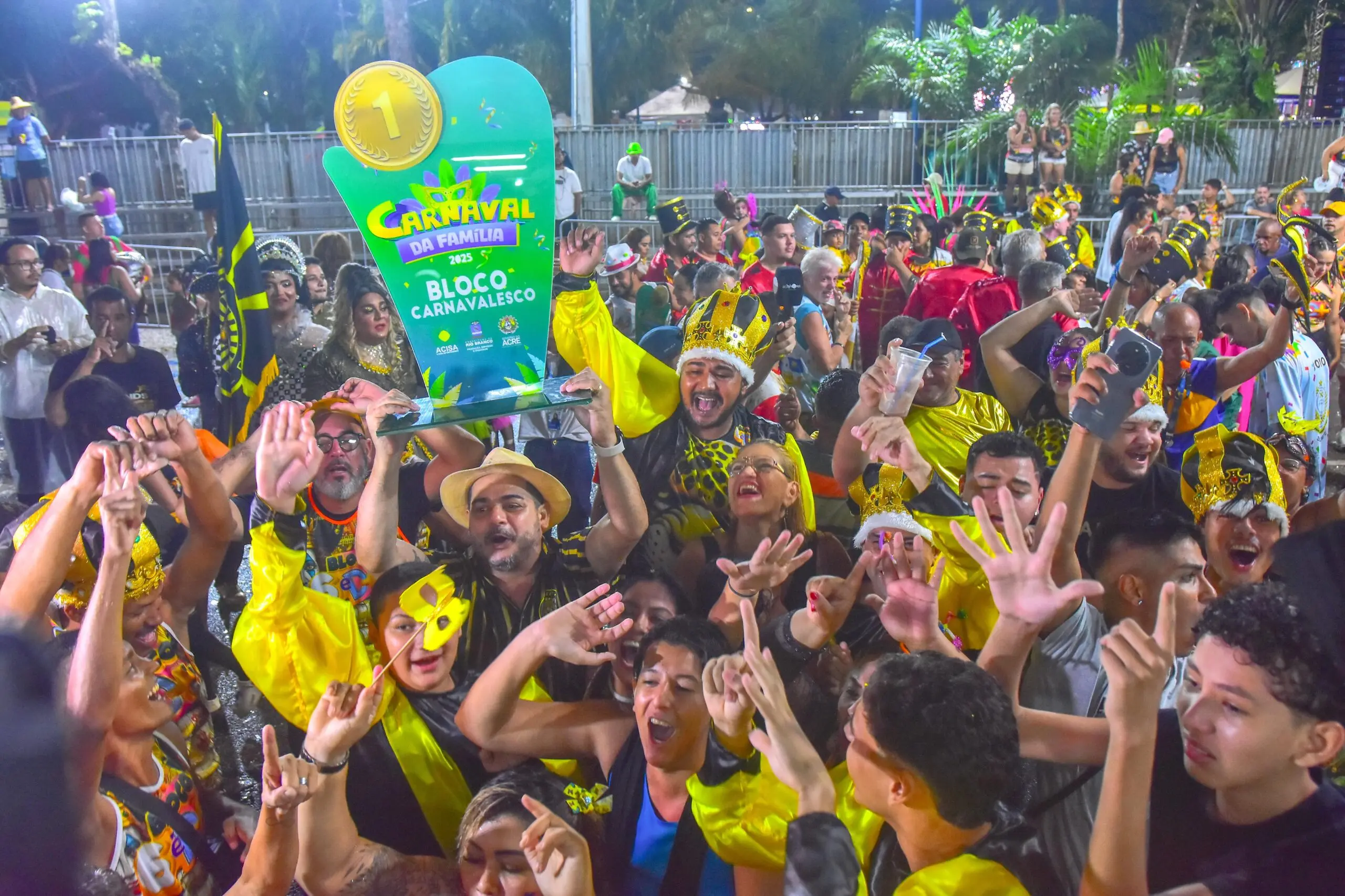 Além da competição dos blocos, a noite contou com atrações como a cantora Gilmelândia, que encerrou o evento com muito axé, e DJs como Borges e El Mascarado, garantindo diversão até o último minuto da festa.