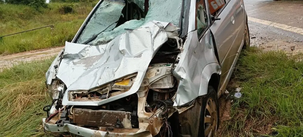 A colisão foi intensa e causou grandes danos à parte frontal do automóvel. Apesar do impacto, os passageiros sofreram apenas ferimentos leves, escapando sem maiores complicações.